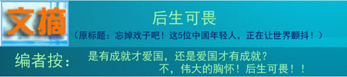 编者按: 是有成就才爱国,还是爱国才有成就?不,伟大的胸怀!后生可畏!!